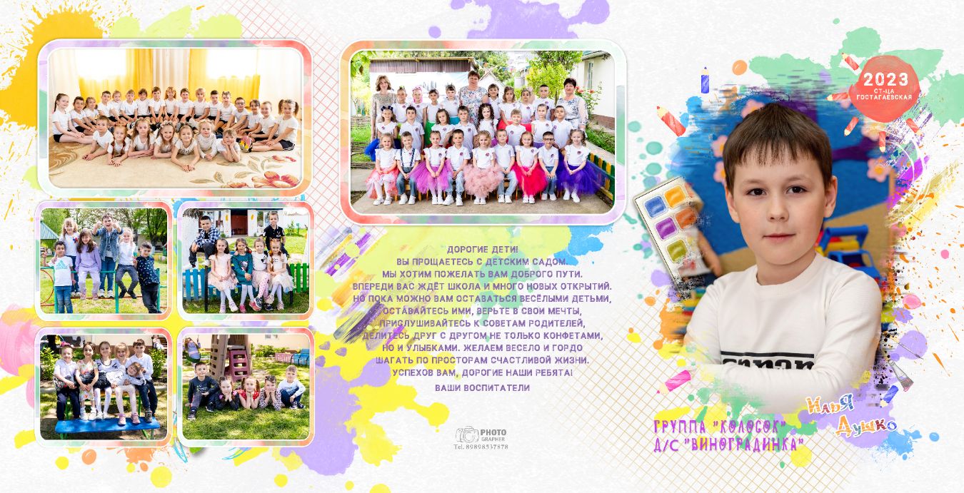 Индивидуальное фото ребенка на обложке. Разные фото из жизни группы в количестве 15-20 шт.